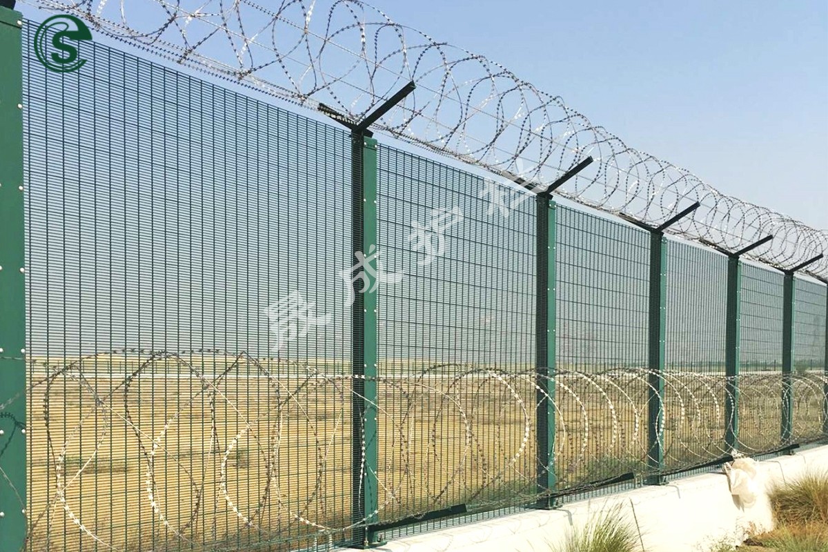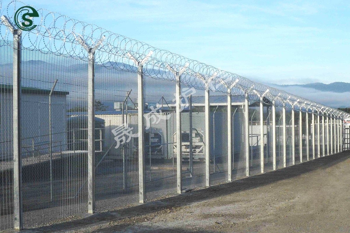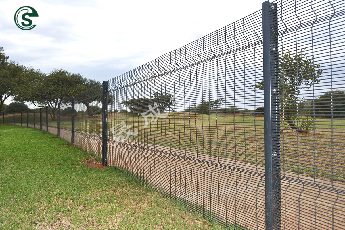 3、?美觀性好?:高強(qiáng)度護(hù)欄網(wǎng)的設(shè)計(jì)簡潔、美觀,適用于各種環(huán)境。其黑色經(jīng)過熱鍍鋅處理,具有出色的耐候性和防腐蝕性能。這種護(hù)欄網(wǎng)不僅能提供一個(gè)安全界面,還能為環(huán)境增添美感,無論是用于監(jiān)獄還是工業(yè)園區(qū),都能滿足安全和美觀的雙重需求?。
