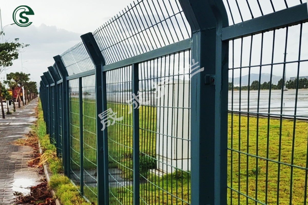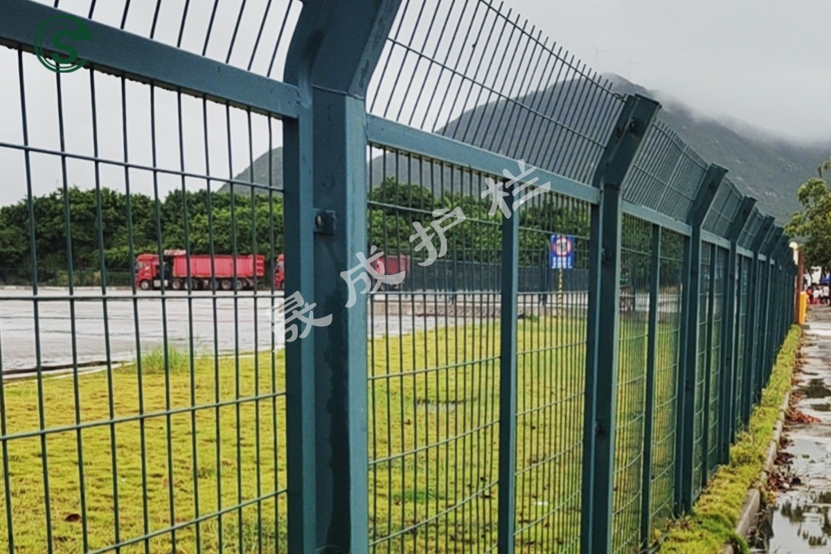 本項(xiàng)目位于高欄港大道環(huán)港西路,為了提升周邊環(huán)境,加強(qiáng)安全防護(hù)設(shè)施,加大各項(xiàng)貨物運(yùn)輸能力,鐵路沿線兩側(cè)采用框架型護(hù)欄網(wǎng)圍蔽。