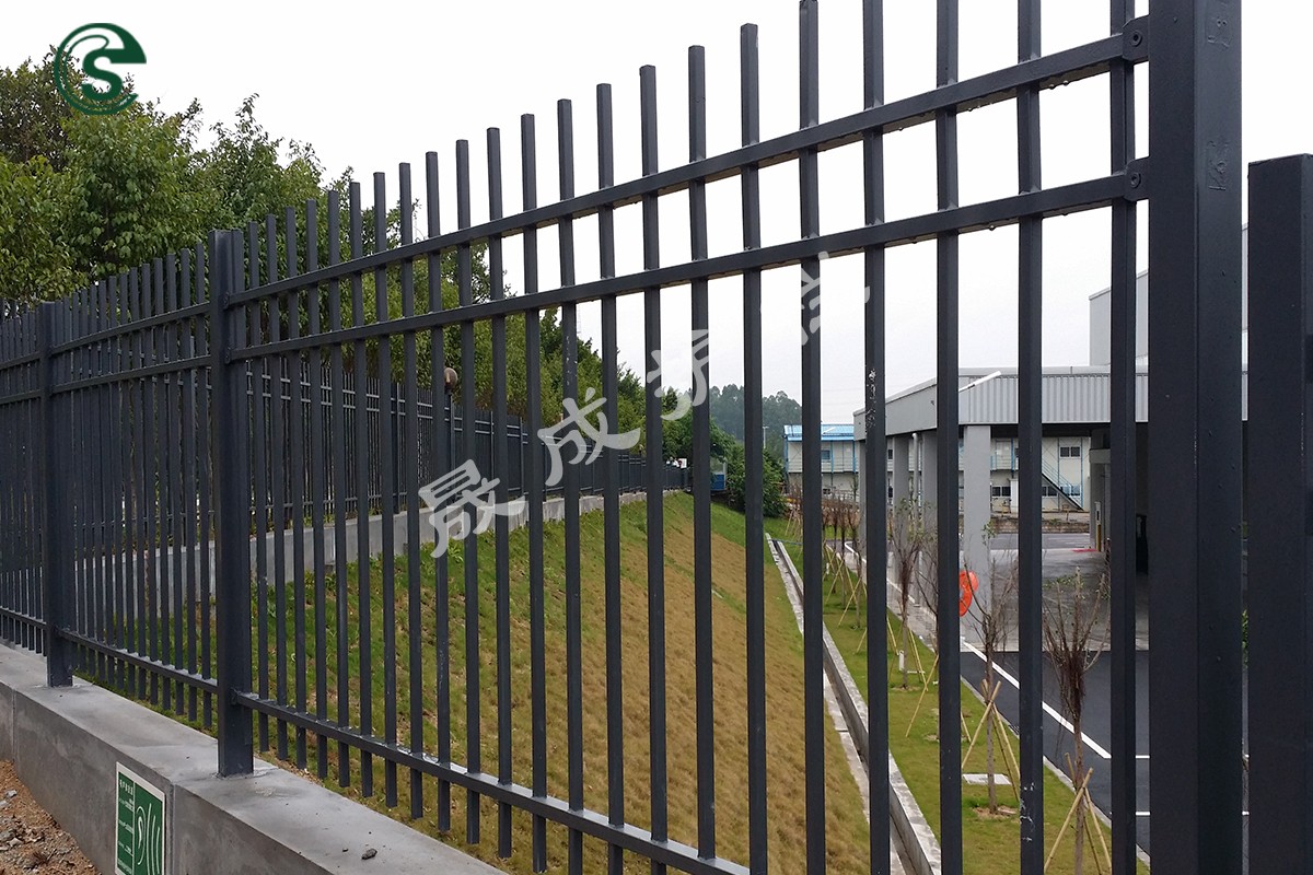 晟成圍墻護(hù)欄的基材采用優(yōu)質(zhì)雙面熱鍍鋅高頻焊管,表面進(jìn)行熱固性聚酯粉末靜電噴涂。橫欄、豎欄采用專用不銹鋼卡片、不銹鋼防盜螺栓穿插組合式固定,也可選擇數(shù)控焊機(jī)焊接成型,護(hù)欄片與主柱采用304不銹鋼連接件安裝固定。具有防腐性能強(qiáng)、運(yùn)輸成本低、安裝方便快捷等特點(diǎn)。晟成圍欄經(jīng)過(guò)多重防腐工藝,在室外使用可達(dá)到十五年以上的使用壽命。