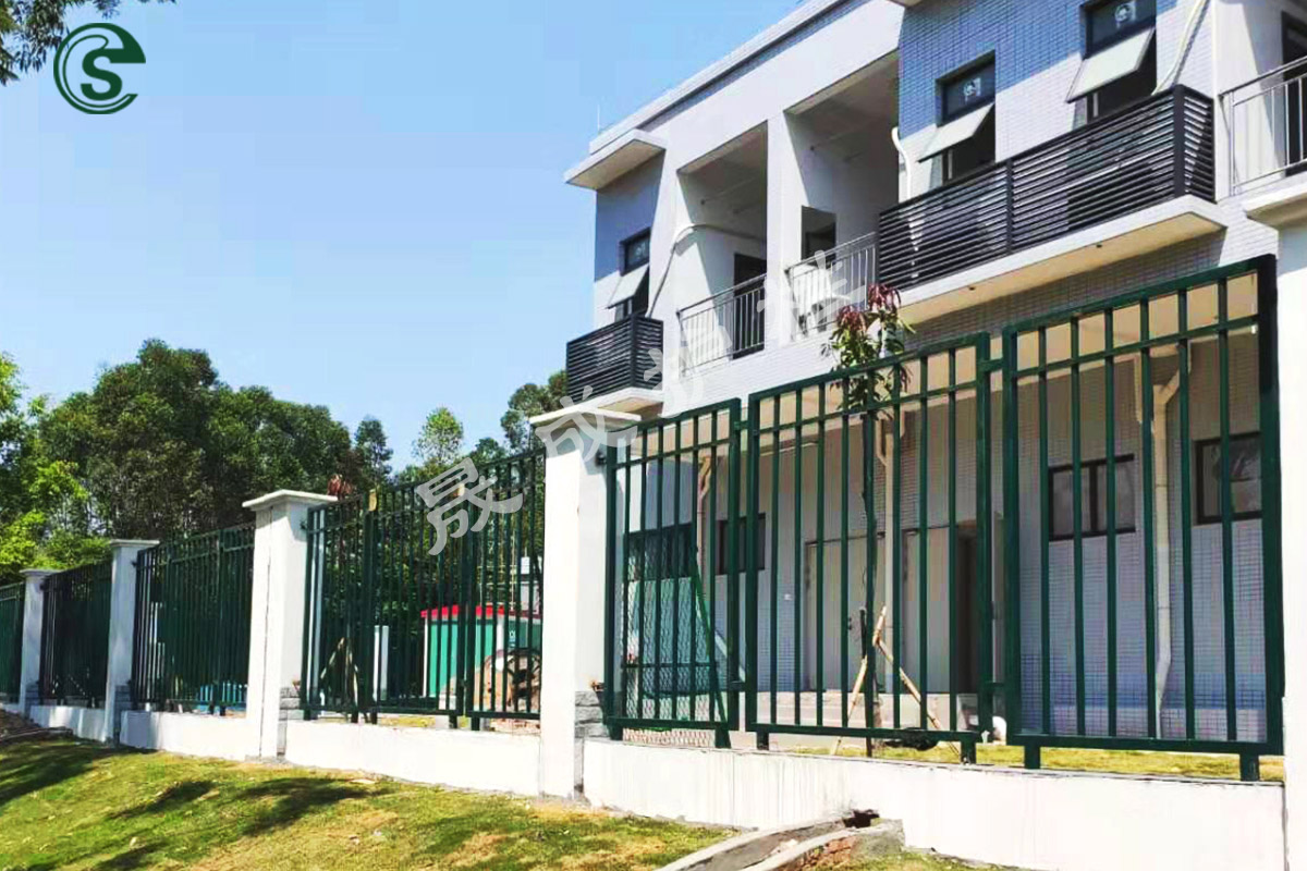 晟成圍墻護欄的基材采用優(yōu)質(zhì)雙面熱鍍鋅高頻焊管,表面進行熱固性聚酯粉末靜電噴涂。橫欄、豎欄采用專用不銹鋼卡片、不銹鋼防盜螺栓穿插組合式固定,也可選擇數(shù)控焊機焊接成型,護欄片與主柱采用304不銹鋼連接件安裝固定。具有防腐性能強、運輸成本低、安裝方便快捷等特點。晟成圍欄經(jīng)過多重防腐工藝,在室外使用可達到十五年以上的使用壽命。